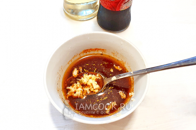 Из всех ингредиентов по списку приготовьте маринад, тщательно смешивая и растирая все составляющие.