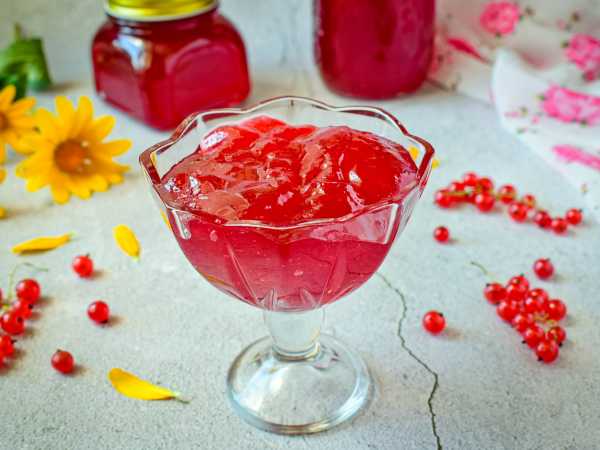 Продукты для приготовления джема из красной смородины с желатином на зиму - перед вами.