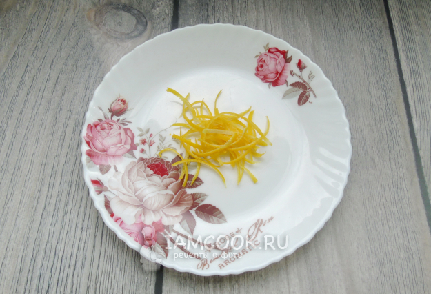 Небольшой лимон помойте, очистите от желтой цедры и нарежьте её.