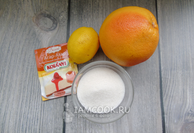 Для приготовления джема из грейпфрута возьмите ингредиенты по списку.