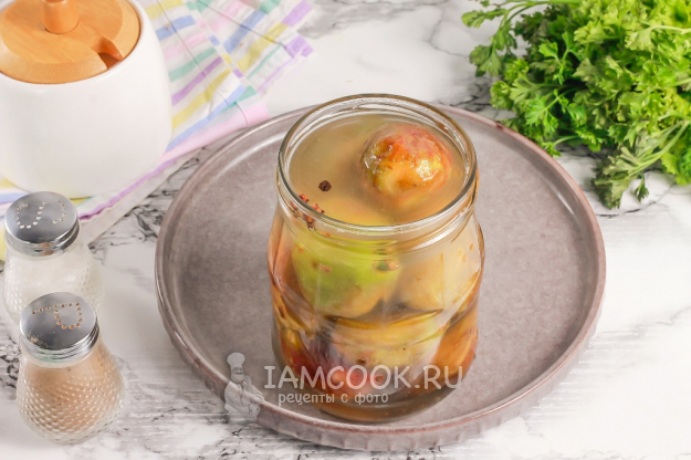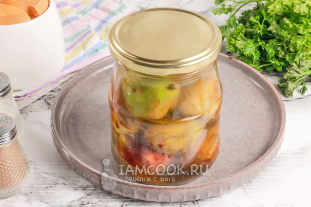 Ошпарьте крышку кипятком и закрутите ее на банке по резьбе или с помощью ключа для консервации. Оставьте заготовку остывать при комнатной температуре, а после перенесите в погреб или подвал, поместите в холодильник. Маринованный инжир на зиму готов.