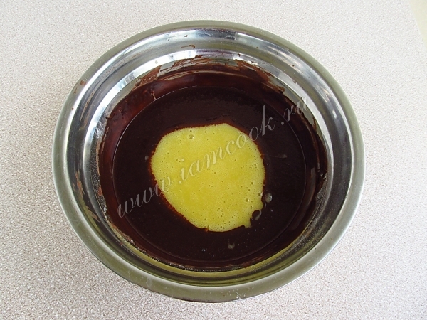 При постоянном помешивании небольшими порциями добавлять желтки в шоколадную массу.