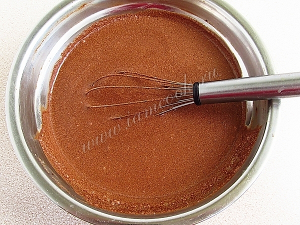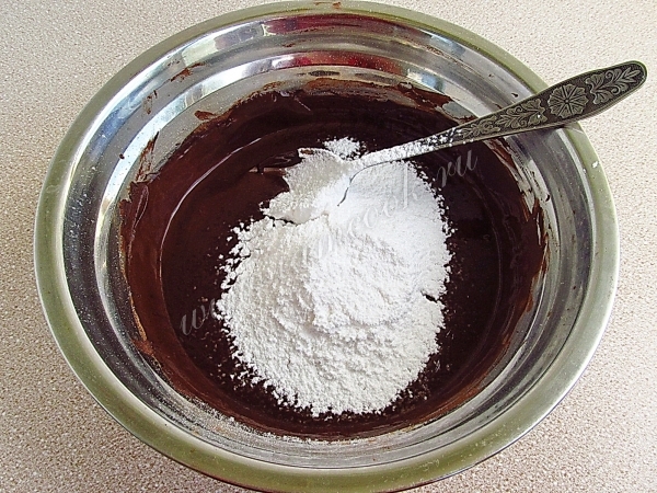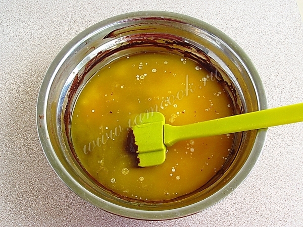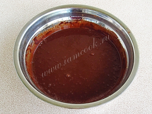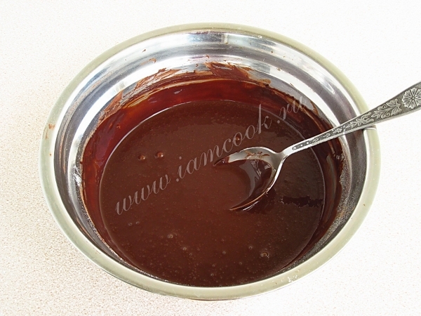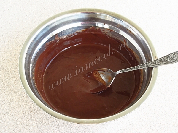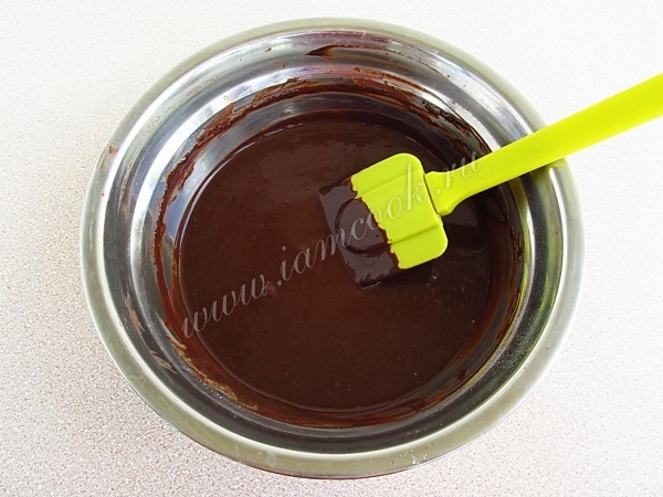 Миску поместить в кастрюлю с горячей водой и растопить смесь на водяной бане.