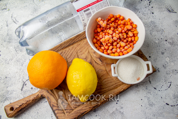 Подготовьте все необходимые ингредиенты для лимонада из облепихи и апельсина с лимоном.