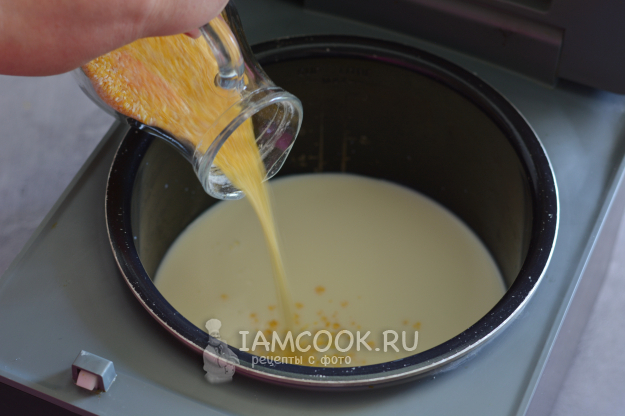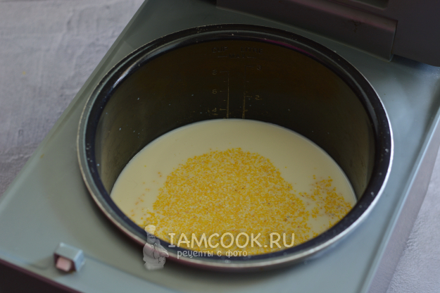 Размешайте молоко с крупой в чаше мультиварки-скороварки.