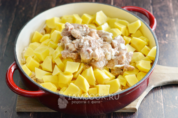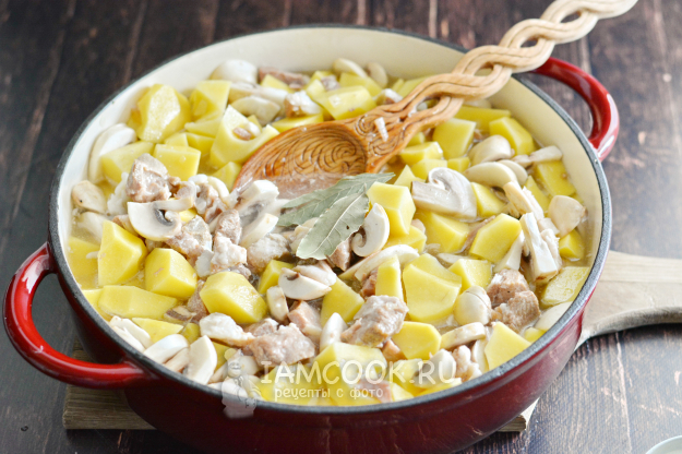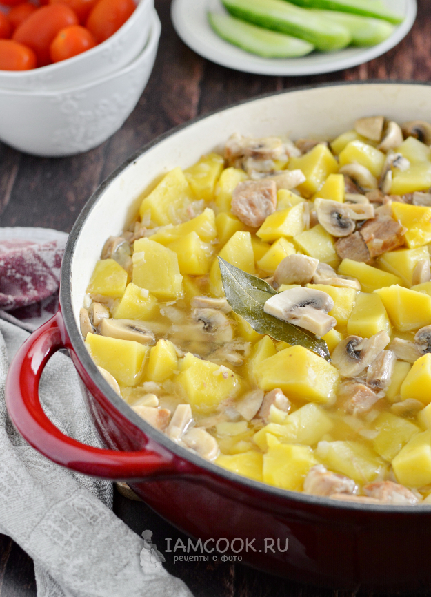 Небольшой секрет: если вам нравится картофель разваренный, то почаще перемешивайте блюдо, тогда кусочки картофеля развалятся и перемешаются с соусом. А если любите, чтобы кусочки картофеля сохранили форму, то просто добавьте чуть больше воды и не перемешивайте блюдо.