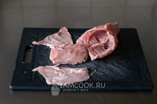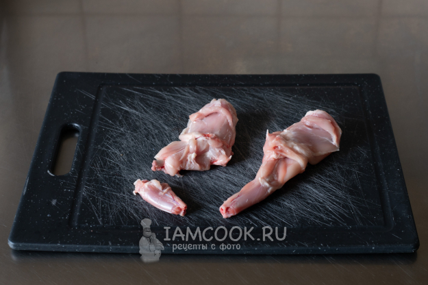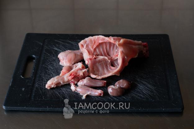 Итак, вот та часть тушки кролика, из которой мы будем делать бульон: грудная клетка, нижние части лап, хвост и почки.