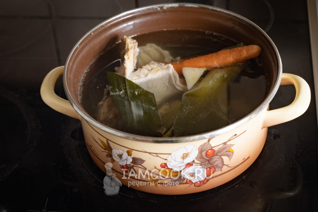 Доводим до кипения, убираем огонь на минимум и варим бульон из кролика под крышкой 40-60 минут (как минимум до того момента, как появится интенсивный аромат крольчатины).