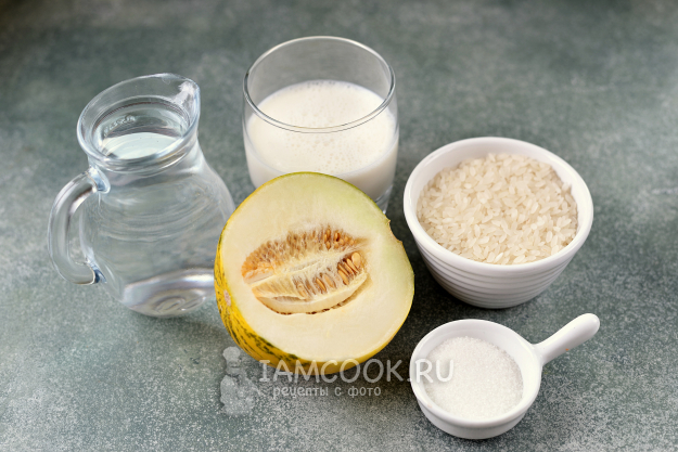 Для приготовления рисовой каши с дыней вам понадобятся все эти продукты. Дыню помойте и обсушите.