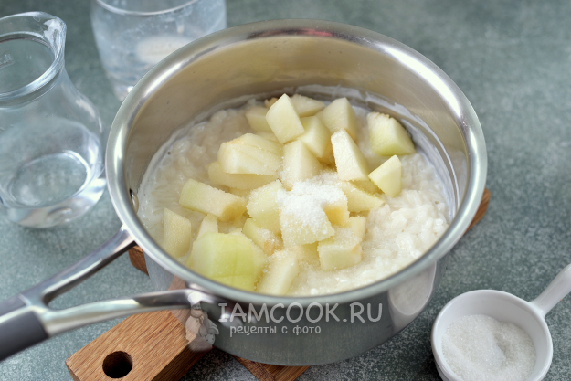 Переложите дыню в сотейник, всыпьте сахар по вкусу, перемешайте и варите еще минуты 2-3. Общее время варки рисовой каши должно быть не больше 20 минут, иначе рис сильно разварится. Густоту каши можно регулировать водой или сливками, если не любите густую.