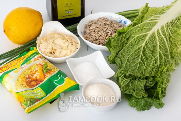 Продукты для салата с вермишелью быстрого приготовления представлены на фото (подробнее - в списке ингредиентов).