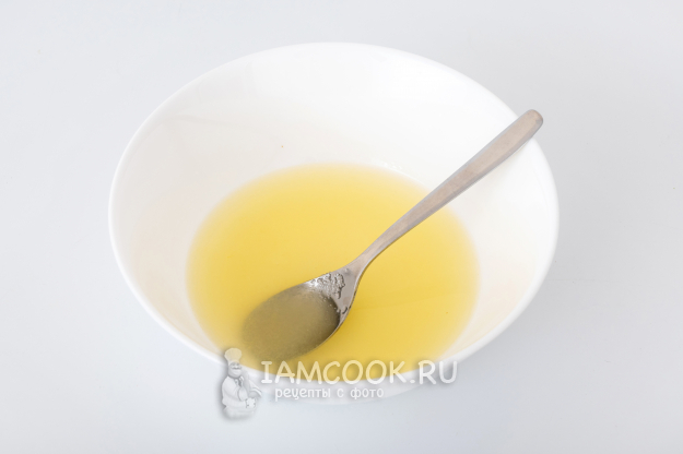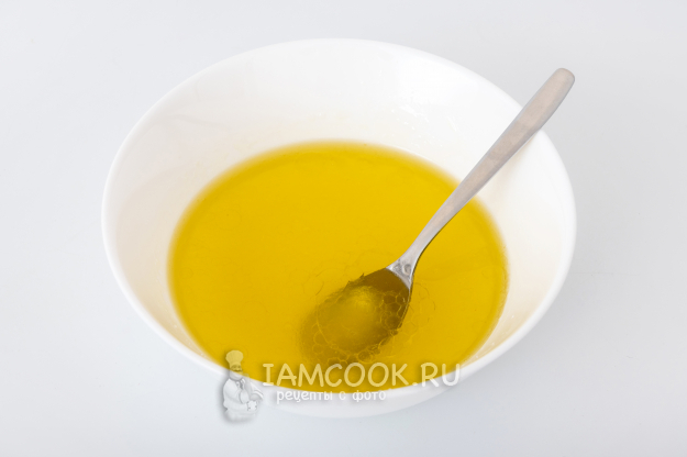 Влейте ароматное оливковое масло (ну или подсолнечное) и взбейте немного смесь вилочкой или ложечкой.
