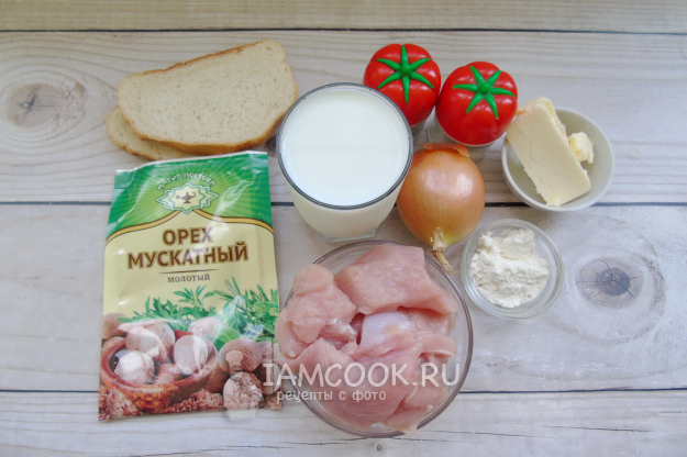 Для приготовления фрикаделек в соусе "Бешамель" возьмите ингредиенты, показанные на фото.