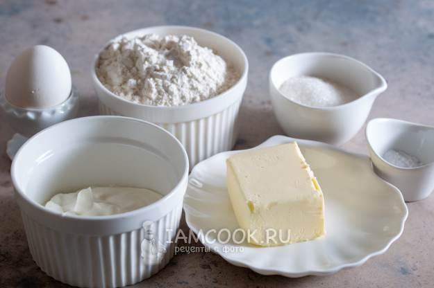 Продукты для приготовления северных калачей (архангельских) на сметане представлены на фото и в списке ингредиентов. Яйцо я взяла категории СО, сметана у меня 20% жирности.