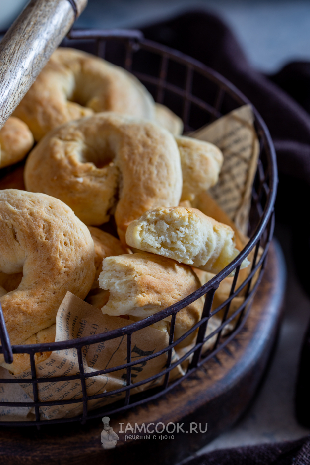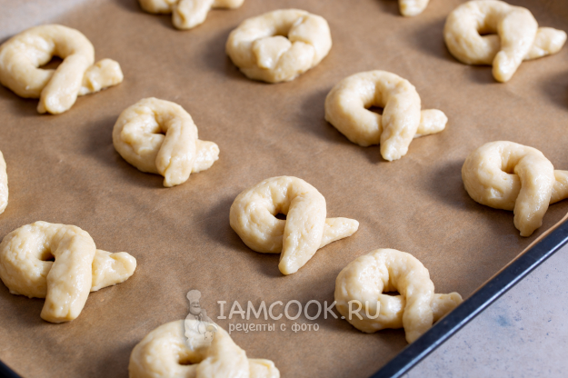 Выложите калачи на противень, смазанный маслом или застеленный бумагой для выпечки.