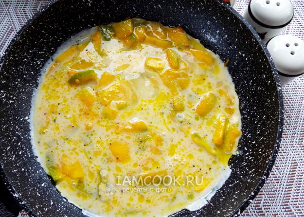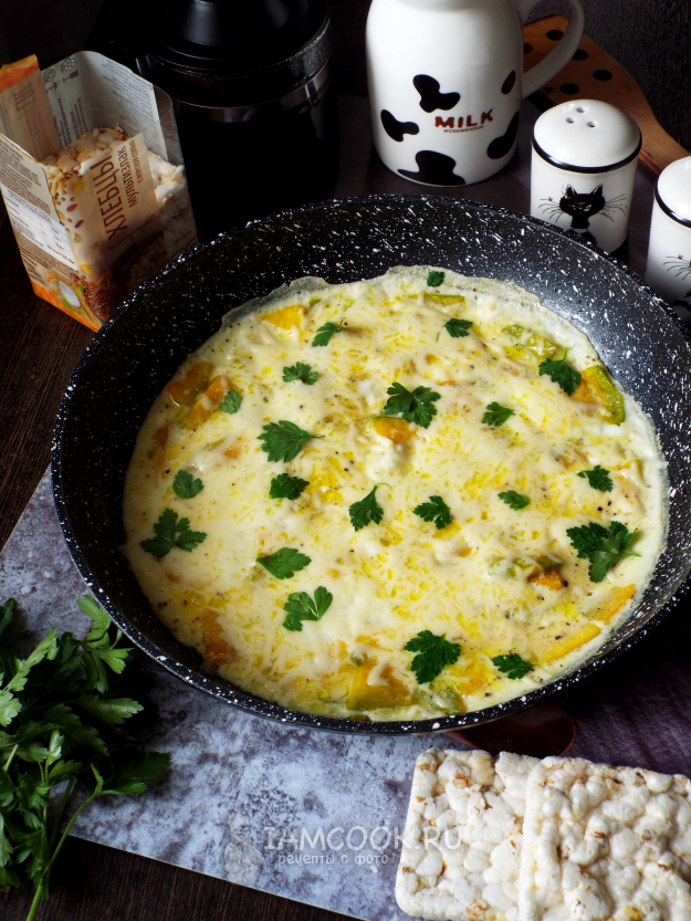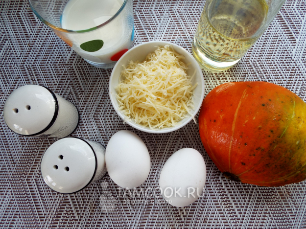 Вот такие ингредиенты нам понадобятся для приготовления омлета с тыквой на сковороде.