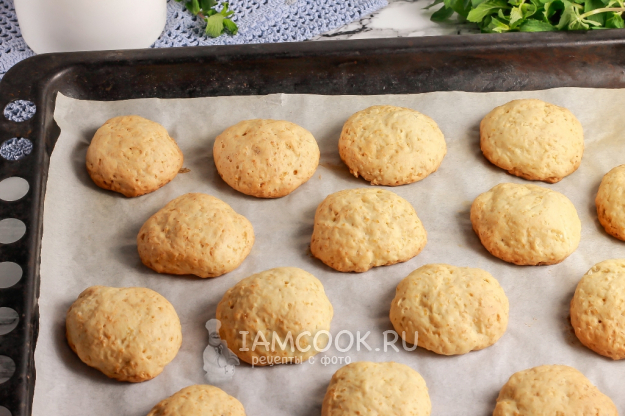Выложите пшенично-кукурузное печенье на тарелку и подайте к столу. Его поверхность получится в крапинку из-за частичек крупы. Особенно вкусно оно в теплом виде с различными напитками: чаем, молоком, капучино или какао!
