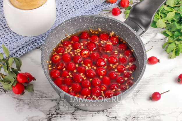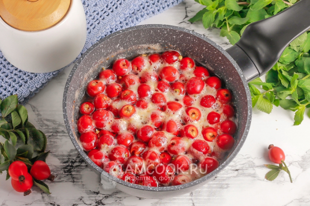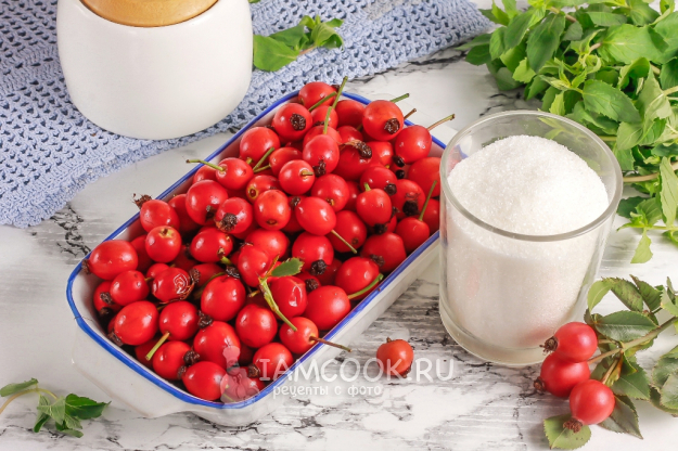 Продукты для приготовления вкусного варенья из шиповника на зиму - перед вами.