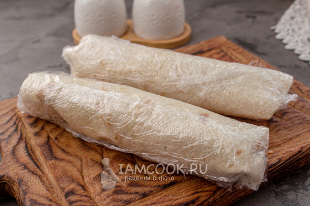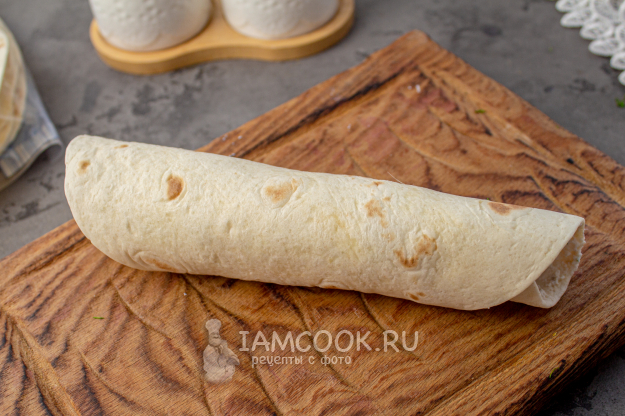 Аналогично поступите и со второй тортильей. Заготовки заверните в пленку и уберите в холодильник на минут 30 или более. Если готовите на завтрак для семьи, то можно подавать сразу.