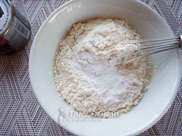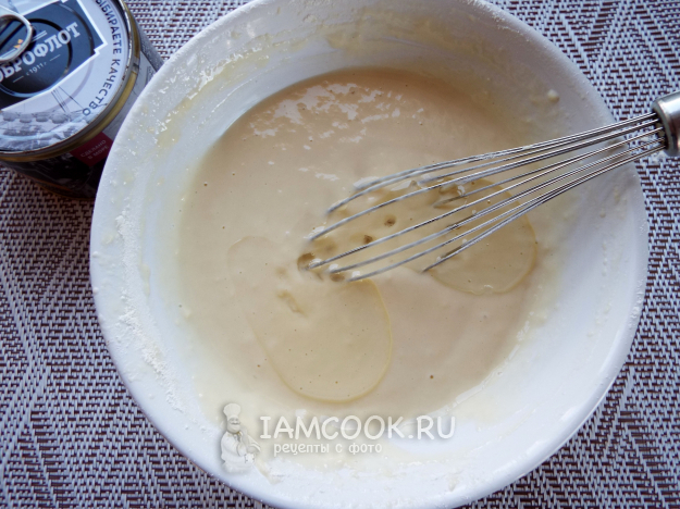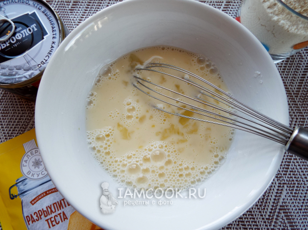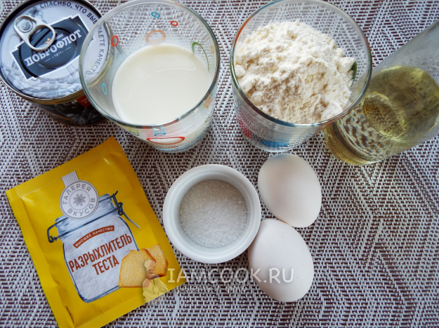 Заливной пирог с рыбными консервами на молоке готовим из таких ингредиентов.