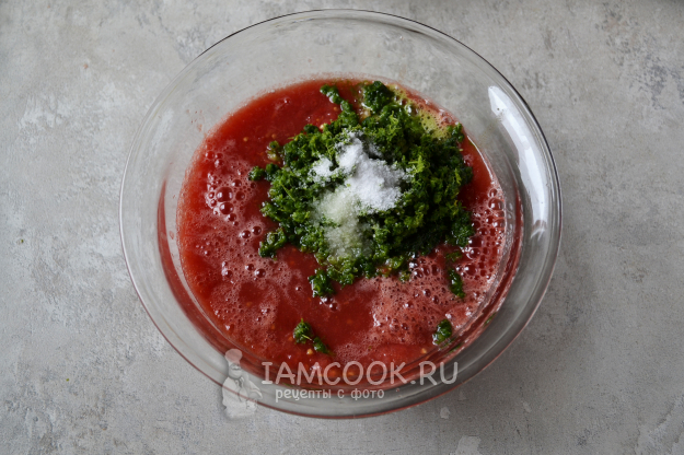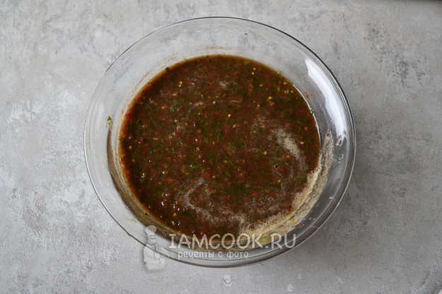 Перемешайте, чтобы соль растворилась. Оставьте на столе на полчаса, чтобы соус настоялся.
