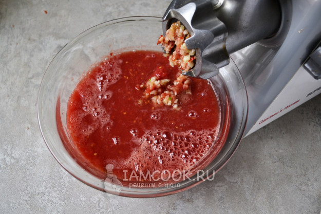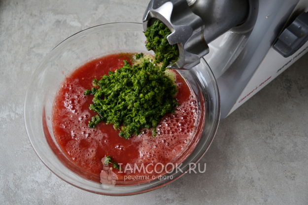 Затем отправьте в мясорубку очищенные зубчики чеснока.