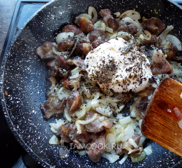 Ароматные и сытные тушеные куриные желудки в майонезе готовы.