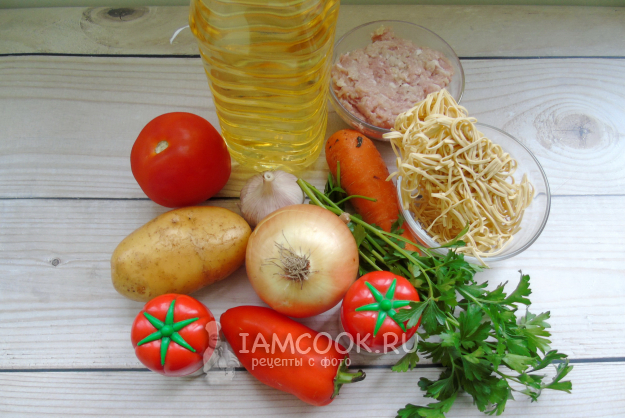 Для приготовления лагмана с фрикадельками потребуются ингредиенты, показанные на фото.