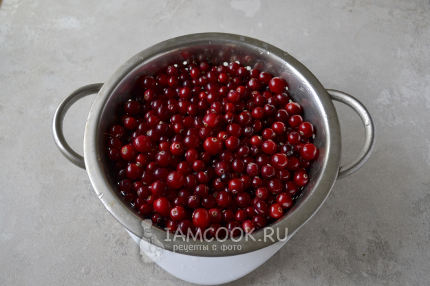 Клюкву тщательно переберите. Подпорченные ягоды и растительный мусор уберите. Промойте клюкву и откиньте на сито.