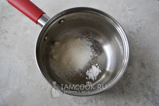 Слейте воду из банки. Поставьте сотейник на огонь, нагрейте, чтобы сахар и соль полностью растворились. Снимите с огня и охладите заливку до комнатной температуры.