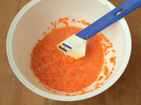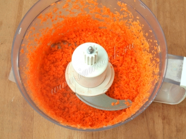 Морковь измельчить в кашицу при помощи комбайна.