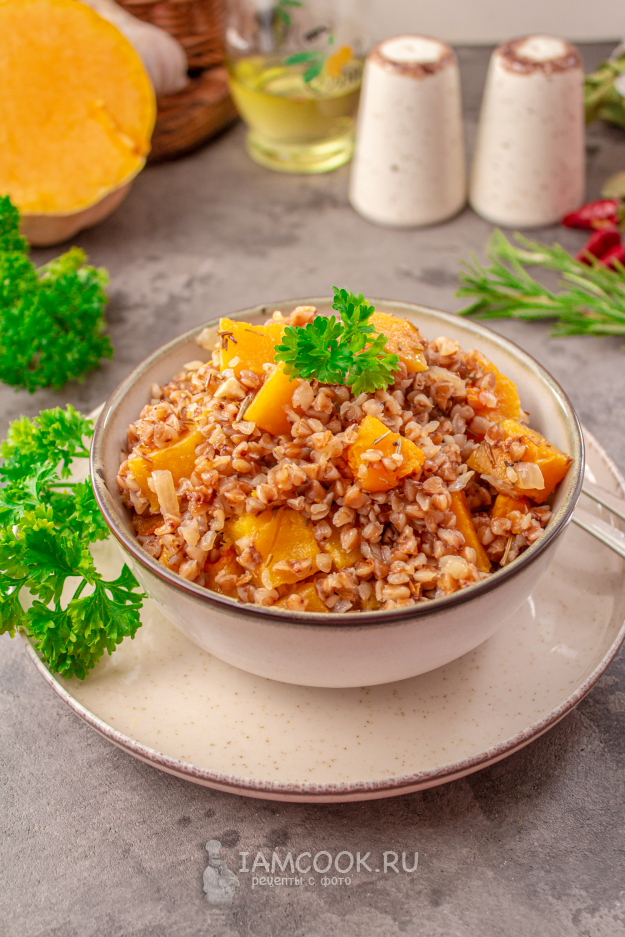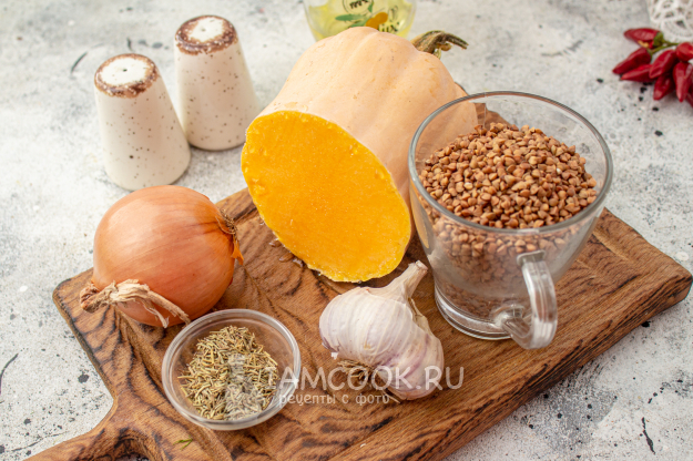Необходимые продукты для приготовления гречки с тыквой в мультиварке - перед вами.