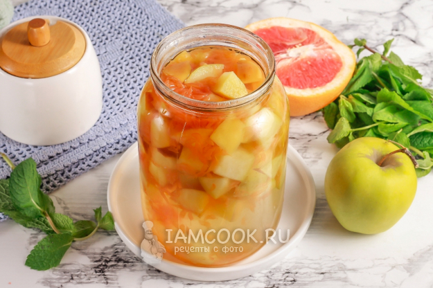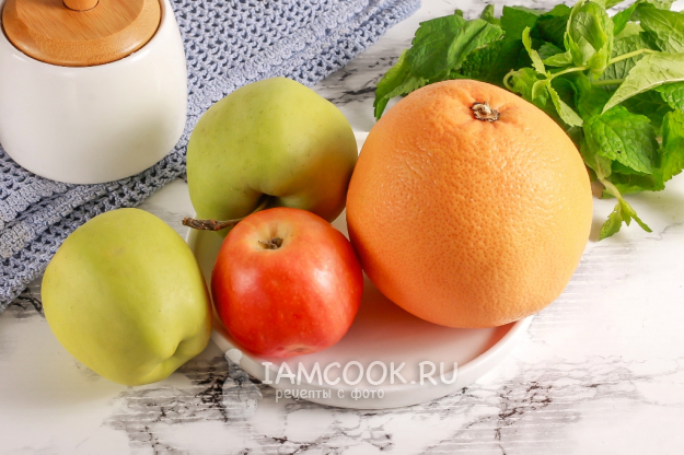 Продукты для приготовления компота из грейпфрута и яблок на зиму - перед вами.