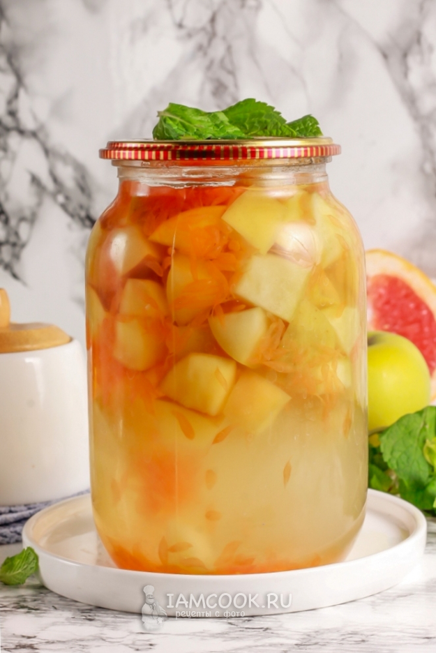Сразу закупорьте крышкой с помощью ключа для консервации или прокрутите по резьбе, если используете твист крышку. Остудите при комнатной температуре и после перенесите на хранение в кладовую, подвал, гараж и т.д. Компот из грейпфрута и яблок на зиму готов!