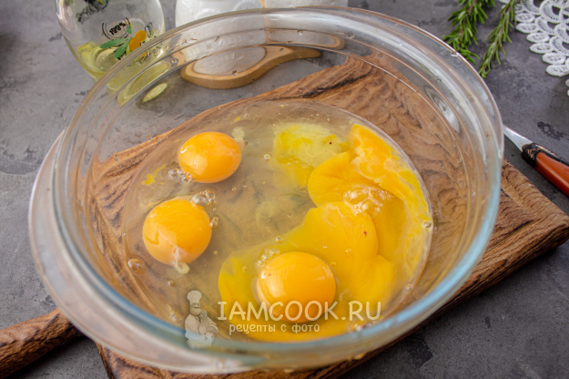 Вбейте яйца в подходящую миску, посолите и смешайте, чтобы соединились желток и белок. Взбивать не нужно!