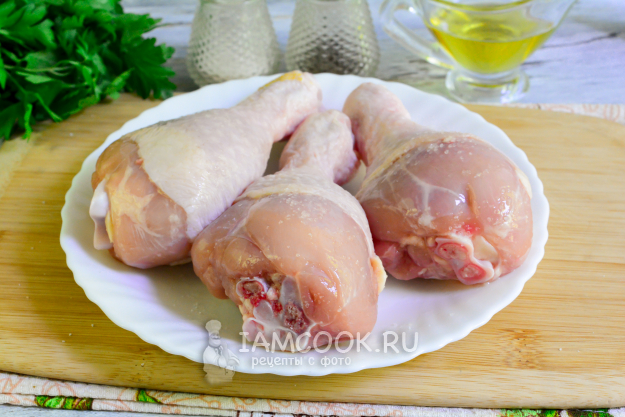Куриные ножки промойте и вытрите бумажными полотенцами. Натрите мясо солью по вкусу.