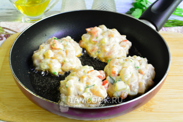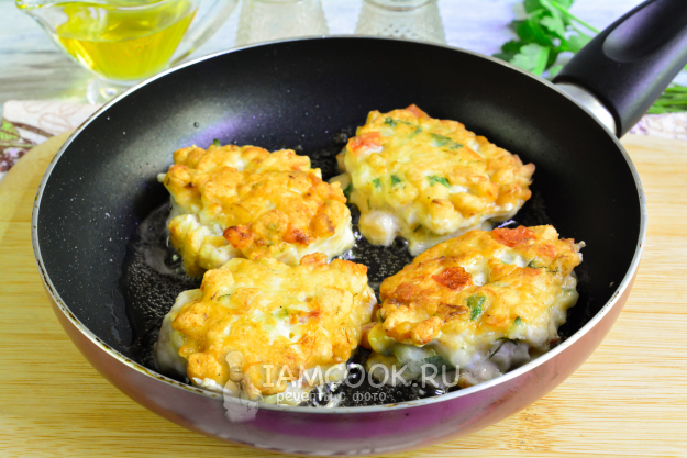 Обжаривайте куриные котлеты с двух сторон по 5-7 минут, затем огонь убавьте и жарьте еще пару минут, до готовности. Котлеты должны хорошо прожариться внутри.