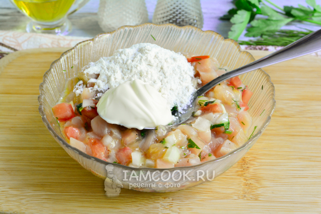 Еще раз перемешайте фарш, чтобы все ингредиенты хорошо соединились. Фарш не должен быть жидким. Если что - добавьте еще пол-ложки муки.