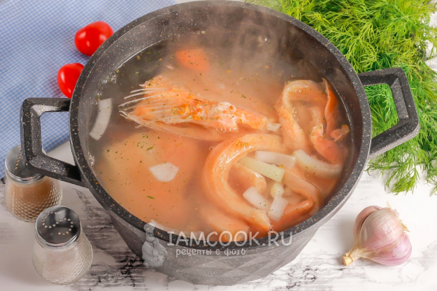 Влейте горячую воду и поместите казан на плиту. Доведите его содержимое до кипения и снимите образовавшуюся пену. Не переживайте, жир не снимется вместе с пеной. Отварите на умеренном нагреве уху примерно 25 минут.