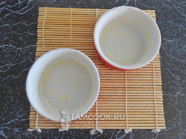 Две формочки смажьте сливочным маслом и посыпьте сахаром.