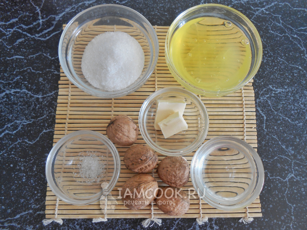 Возьмите все необходимые продукты для приготовления орехового суфле.