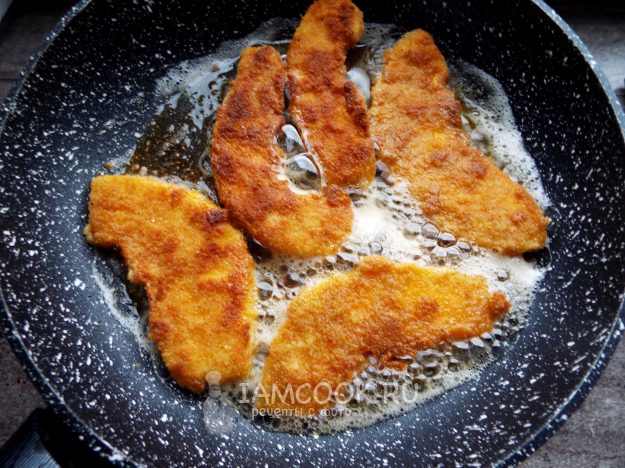 Жарить тыкву в панировке на масле в сковороде, на среднем огне.