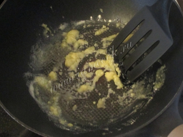 При помешивании обжарьте массу до золотистого цвета.