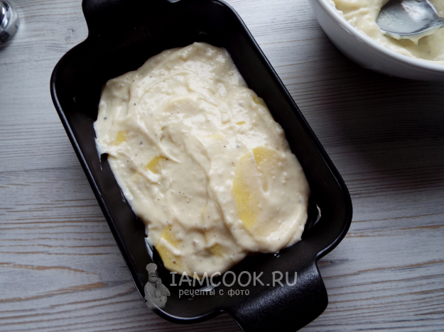 Выложить ещё несколько слоёв картофеля, чередуя с соусом.
