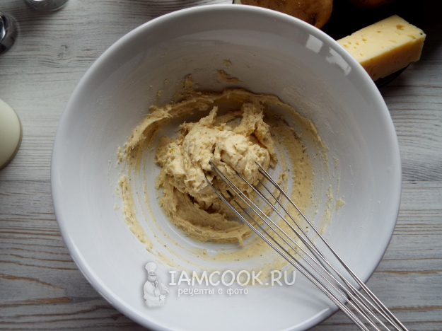 Мягкое или растопленное масло соединить с солью, мускатным орехом и мукой. Перемешать.