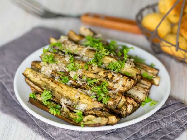 Баклажаны можно запечь накануне, тогда на приготовление закуски уйдет совсем немного времени.