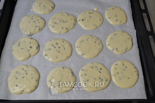 Противень застелите пекарской бумагой и ложкой выложите тесто на небольшом расстоянии друг от друга.