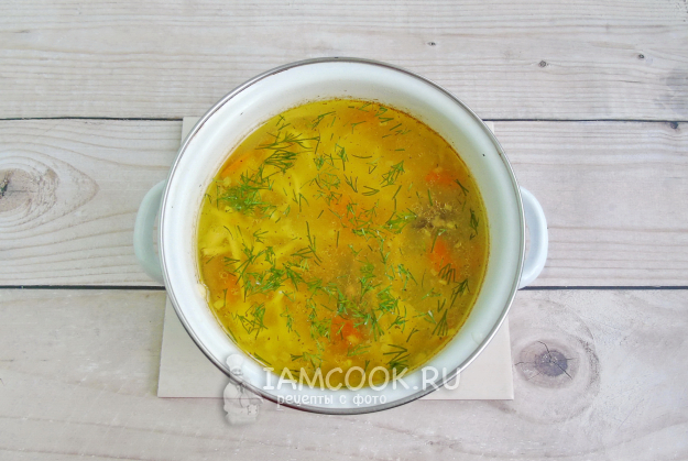 Варите суп еще 7-8 минут и выключайте. После добавьте нарезанную зелень.