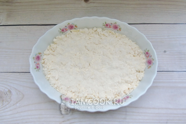 В форму для выпечки выложите чуть больше половины крошки и слегка утрамбуйте руками. Смазывать форму маслом не нужно - в крошке достаточно масла.