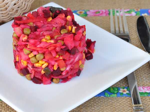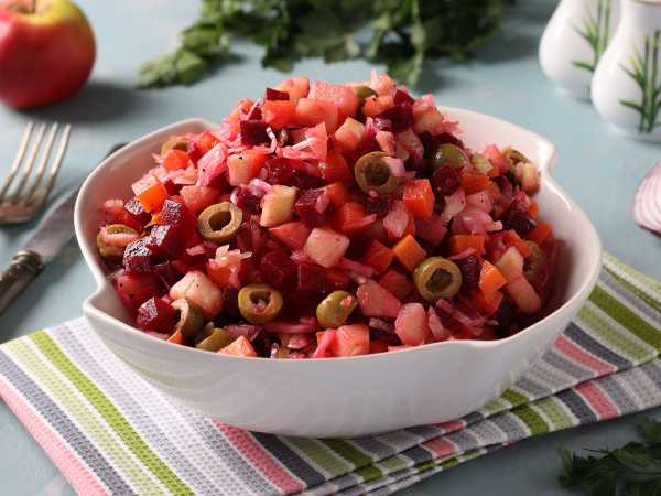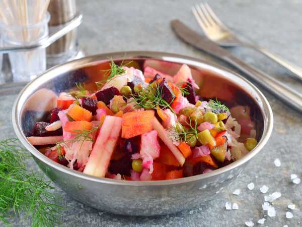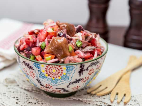 Возьмите на заметку такой необычный вариант винегрета. Привнесите в привычный салат новый нюанс!